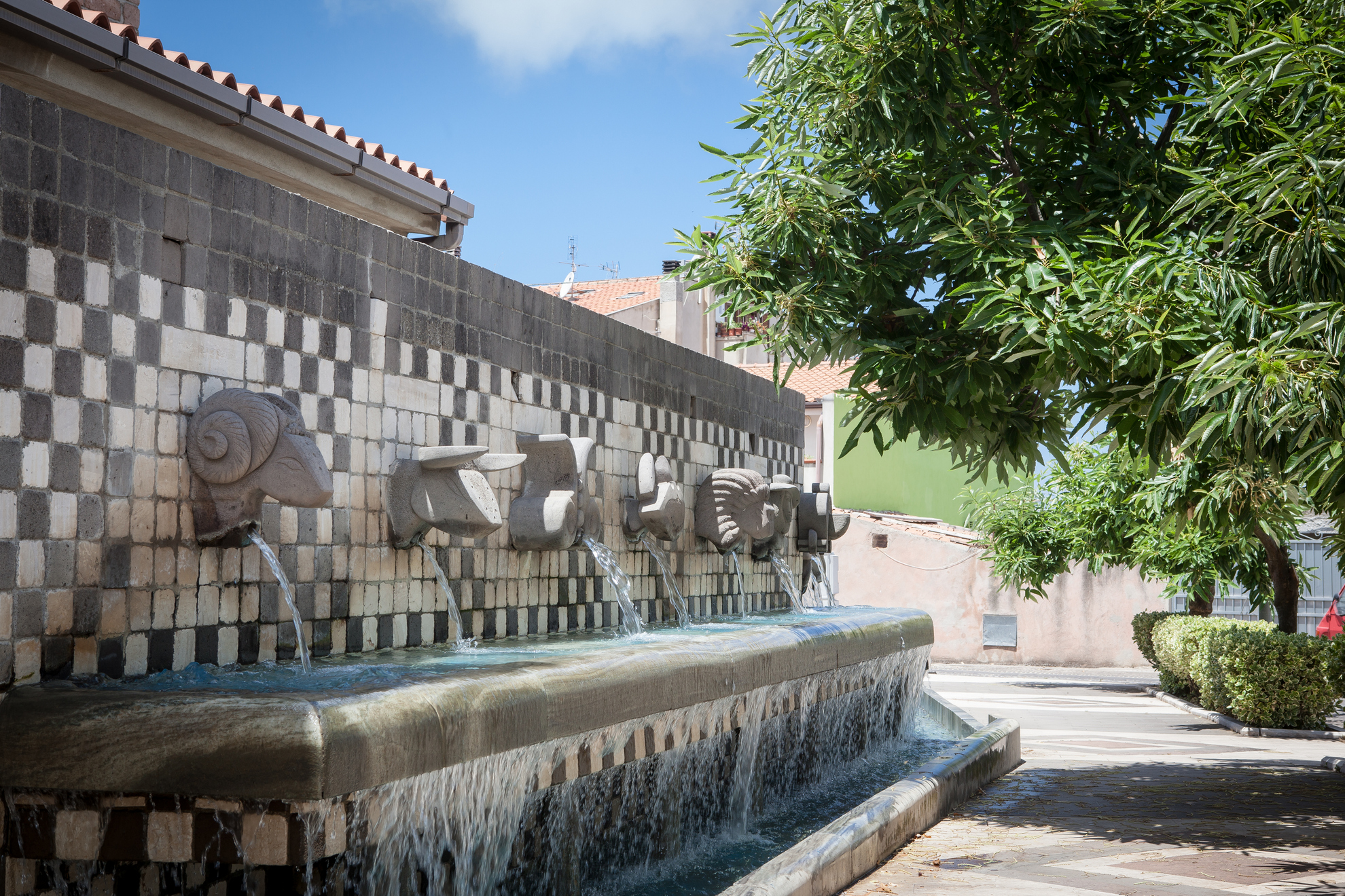 Il paesino è un museo d’arte moderna ‘a cielo aperto’: nelle suggestive vie e piazzette lastricate, ammirerai monumenti e statue di artisti sardi (tra cui Simplicio Derosas e Pinuccio Sciola) e pittoreschi murales dipinti nelle facciate delle case, raffiguranti momenti di vita rurale e del borgo. Ti resterà impressa anche la varietà di colori dei pavimenti lastricati in trachite rossa, marmo bianco e basalto grigio delle strade, lungo le quali, in primavera, noterai le fibre vegetali esposte al sole per essiccare e poi essere usate nel confezionamento dei cestini. Per far macerare l’asfodelo, sino a poco tempo fa, si usava l’acqua delle fontane del borgo, tra cui Funtana ‘e giosso, della quale apprezzerai ingresso architravato e la cupoletta intonacata. È probabile che il toponimo stesso, di origine preromana, derivi da thinnías, ossia le piante del giunco spinoso dei fiumi vicini. Da visitare anche la seicentesca parrocchiale di Sant’Anna con elegante campanile a bande in mattoni rossi. La patrona è celebrata a fine luglio con riti religiosi e civili. Altra festa sentita è per la beata Vergine del Rimedio, a inizio settembre.